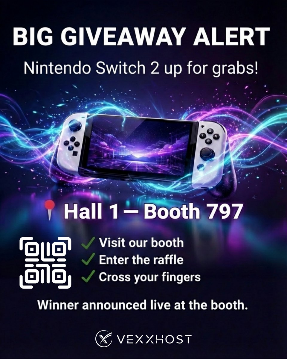 @vexxhost It's nearly giveaway time. 🎁 If you're at #KubeCon + #CloudNativeCon, rush to booth 797 if you haven't yet, and you can get lucky with a Nintendo Switch 2 or an iPaxTF